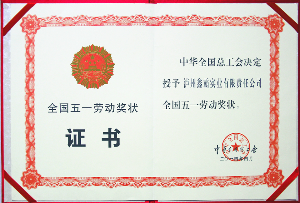 全國五一勞動獎狀