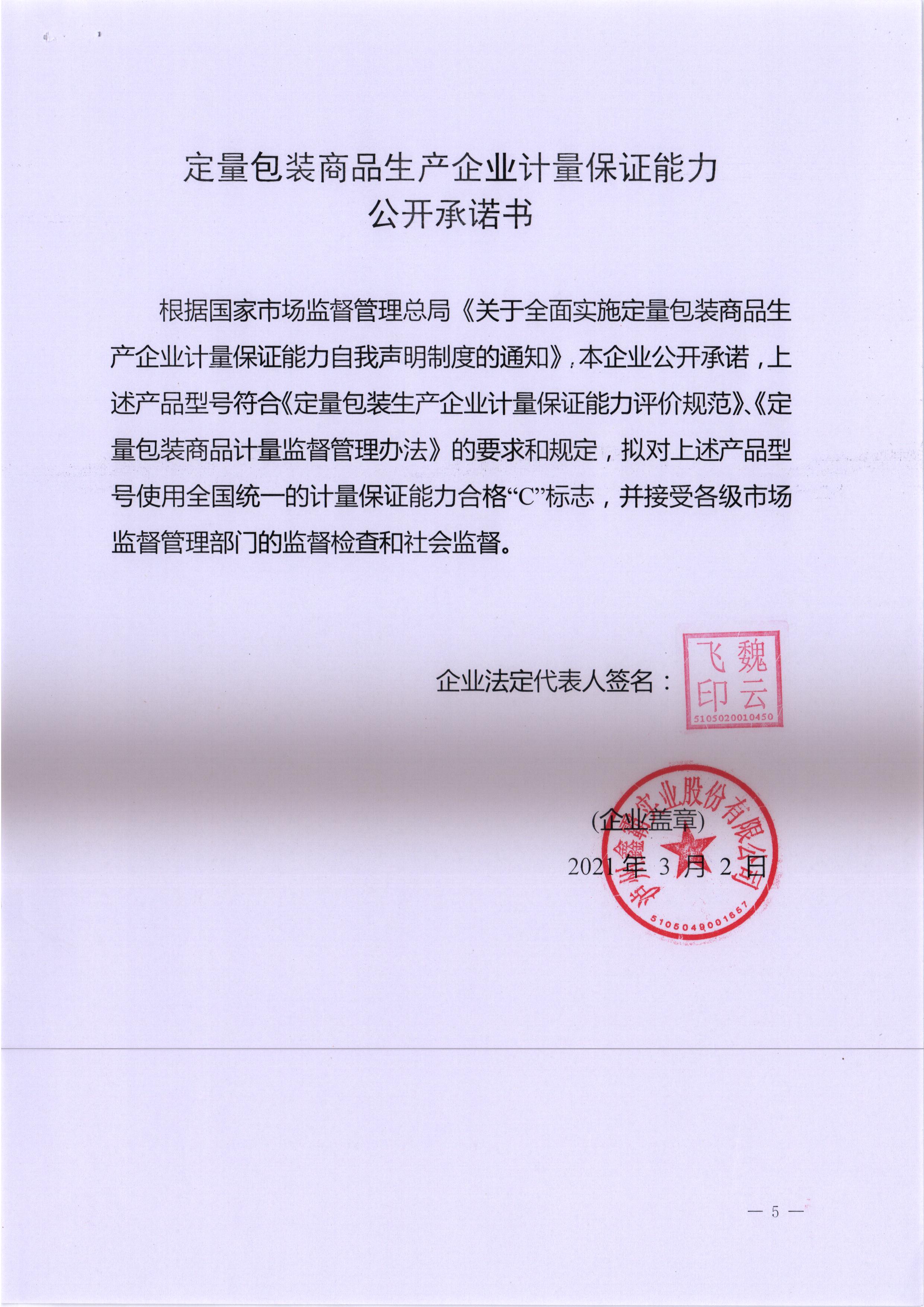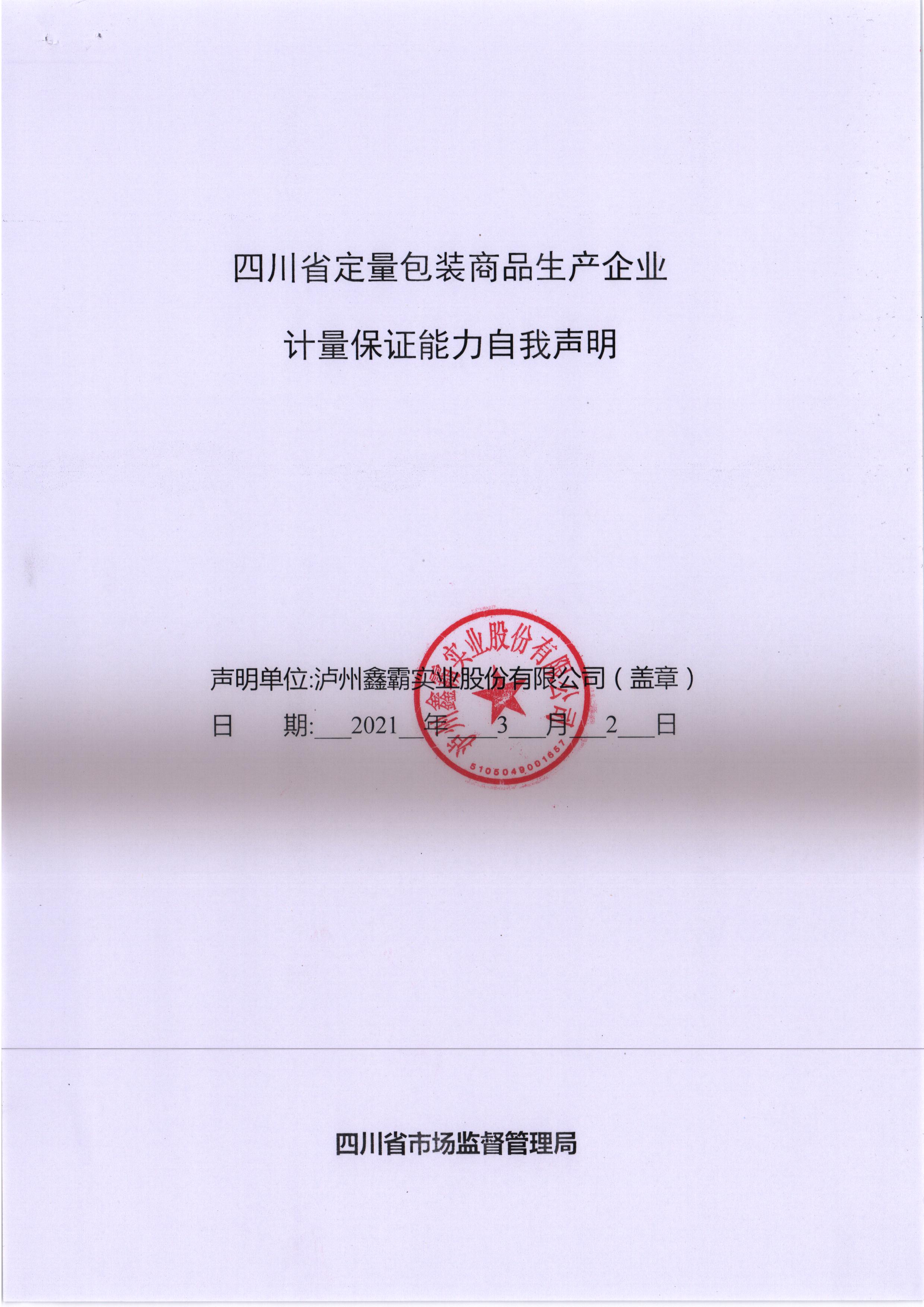 四川省定量包裝商品生產(chǎn)企業(yè)計(jì)量保證能力自我聲明
