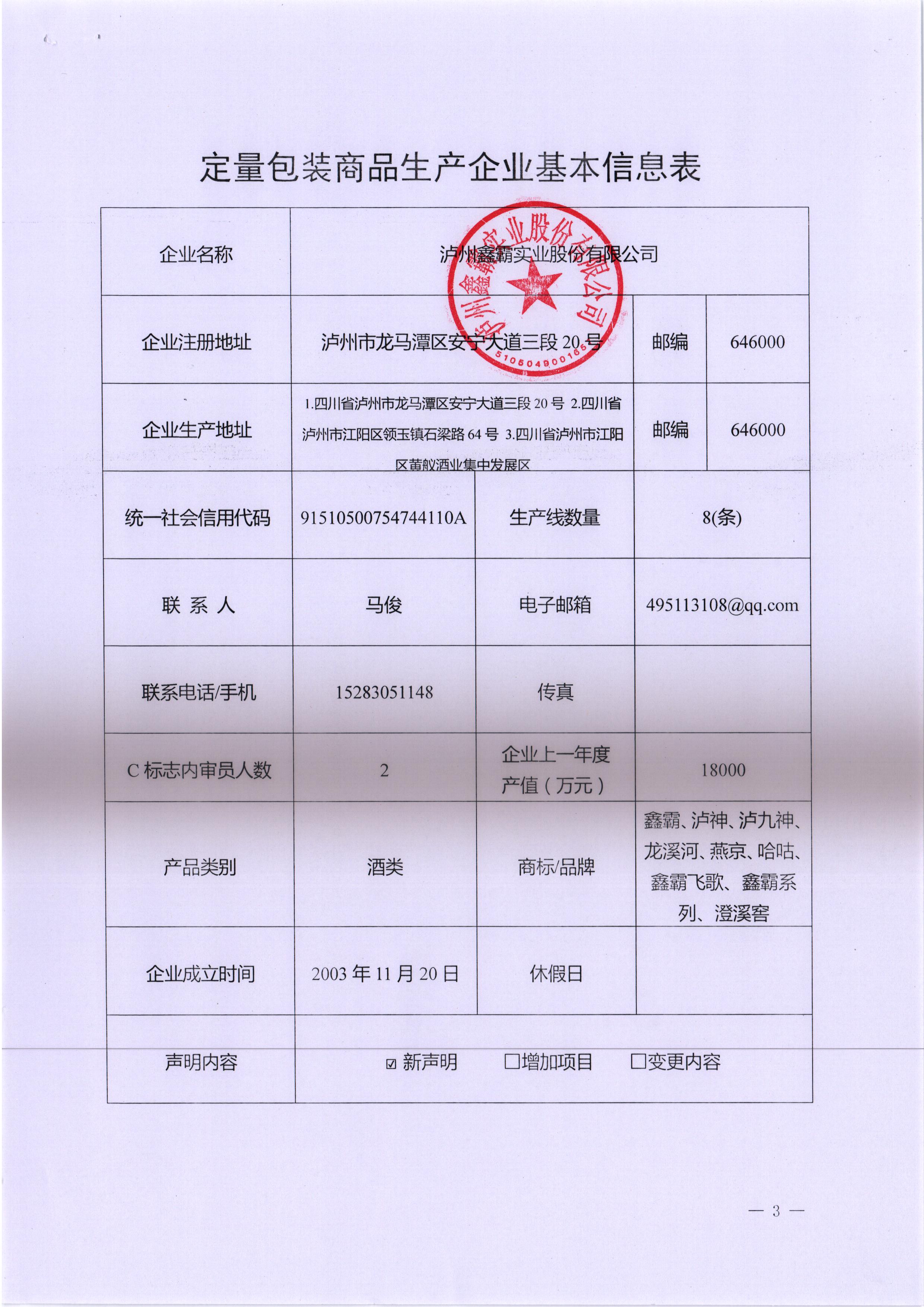 瀘州鑫霸實(shí)業(yè)股份有限公司